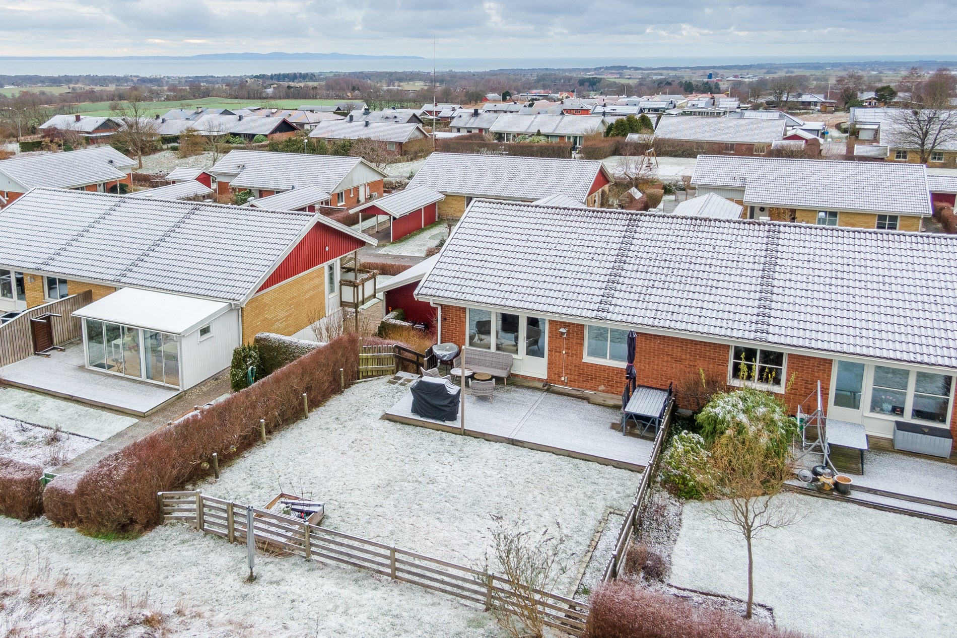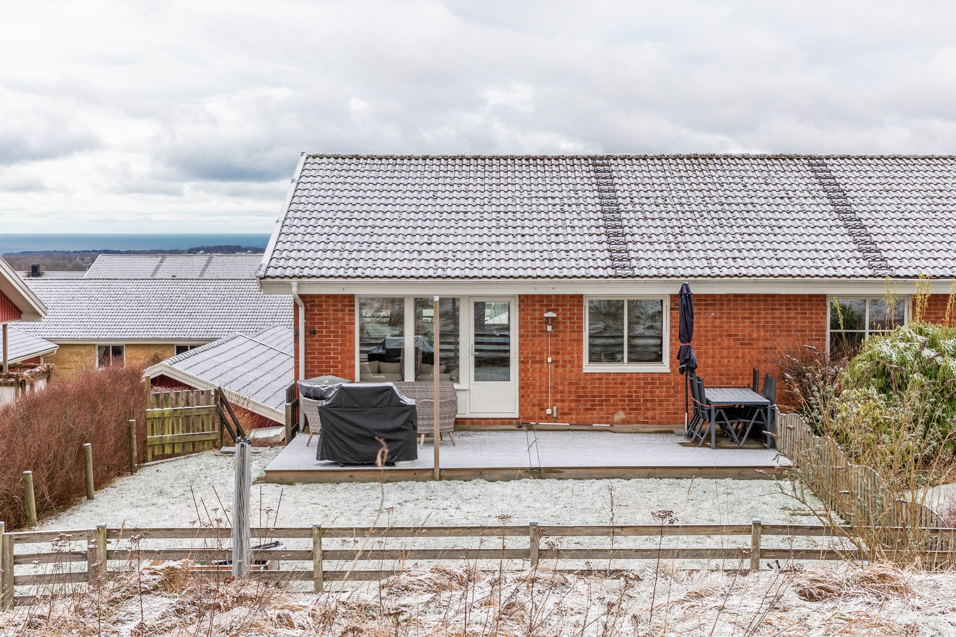 På högt, naturskönt läge i Grevie med fantastisk utsikt finns nu möjlighet att förvärva denna välplanerade bostad fördelad på två plan. Hemmets entréplan rymmer tre bra sovrum, badrum, tvättstuga samt klädkammare. Ovan trappen möts man av ljus och luftig planlösning där kök, vardagsrum och matplats smälter fint samman. Köket har access till generös balkong i sydväst med enastående utsikt över Kullaberg och Skälderviken och från vardagsrummet tar man klivet ut till uteplats och lättskött trädgård med plats för härliga frukostar i solen, lek och avkoppling. Boendet ligger med närhet till lekplats och grönområde. Carport och förråd finns för bekvämligheten liksom kommunikationer strax intill.
